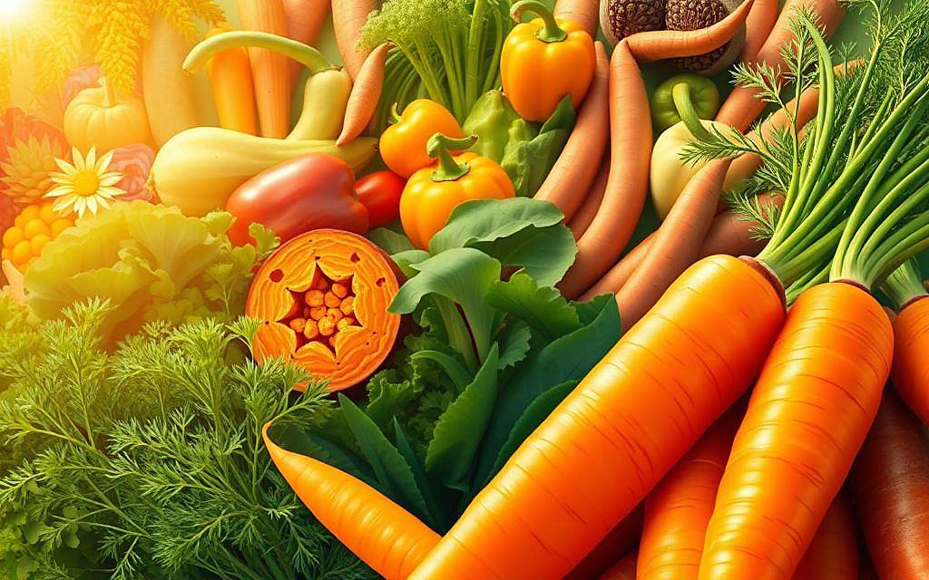Vitamin A findet man nicht nur in tierischen Produkten. Es gibt auch pflanzliche Quellen, wie Beta-Carotin-reiches Gemüse und Obst. Diese liefern Provitamin A, das der Körper in Vitamin A umwandelt.