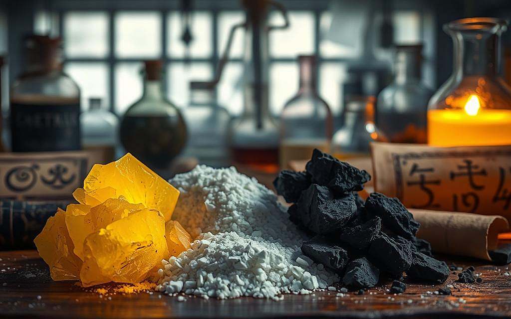 Die Zusammensetzung von Huo Yao, also Schwarzpulver, umfasst typischerweise Salpeter, Schwefel und Holzkohle. Jede dieser Komponenten trug auf unterschiedliche Weise zur medizinischen Wirkung bei.